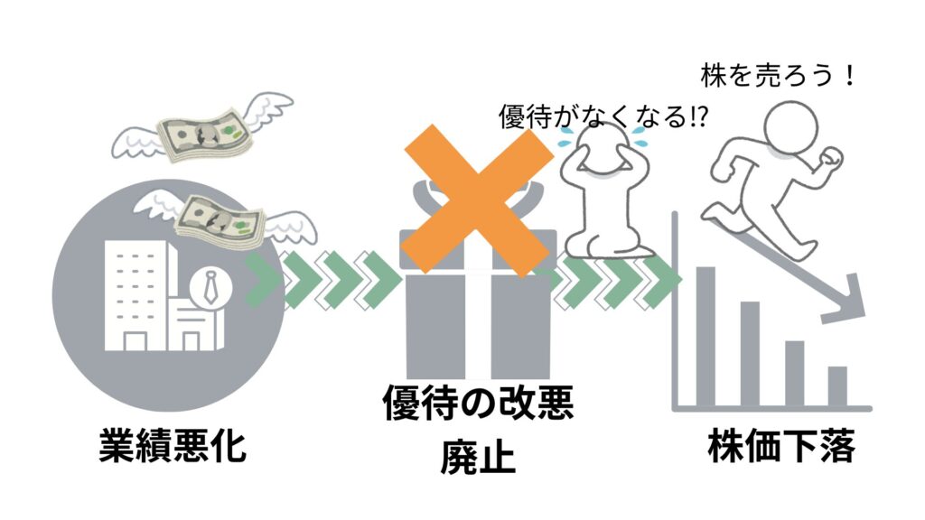 優待がなくなるだけでなく、資産価値も減ってしまうという二重リスクがある点には注意しましょう!